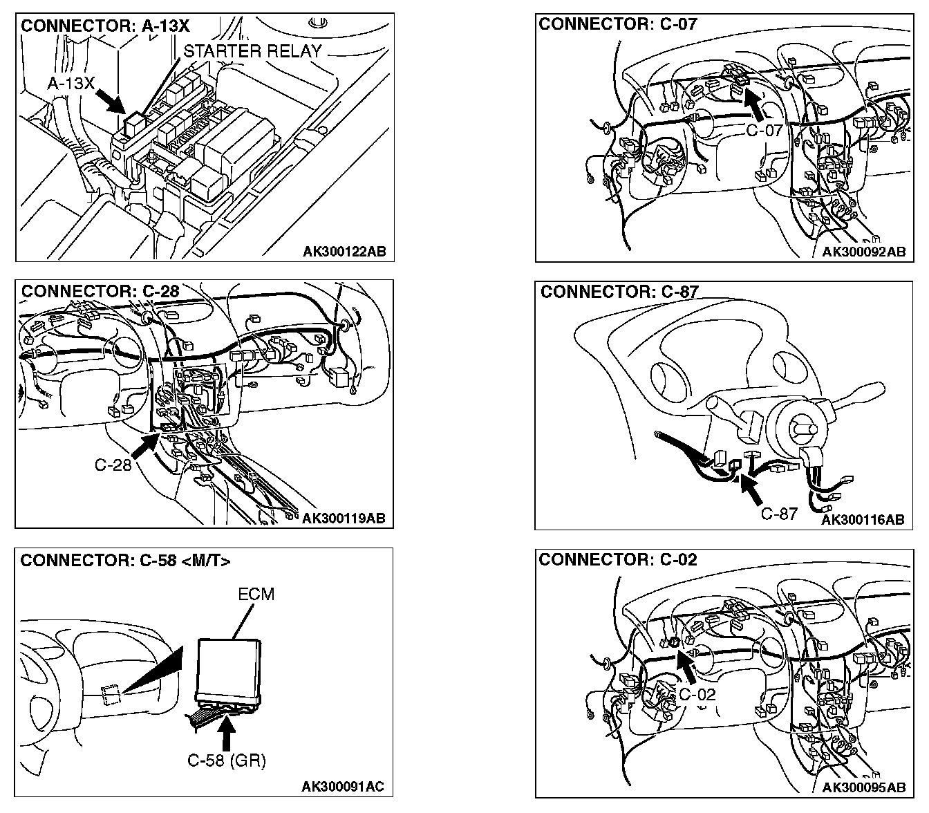 STEP 1. Check connector A-13X at starter relay for damage.
