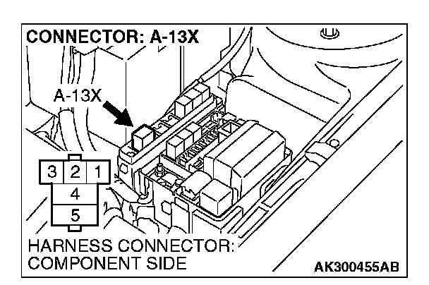1. Disconnect the connector A-13X and measure at the harness side.