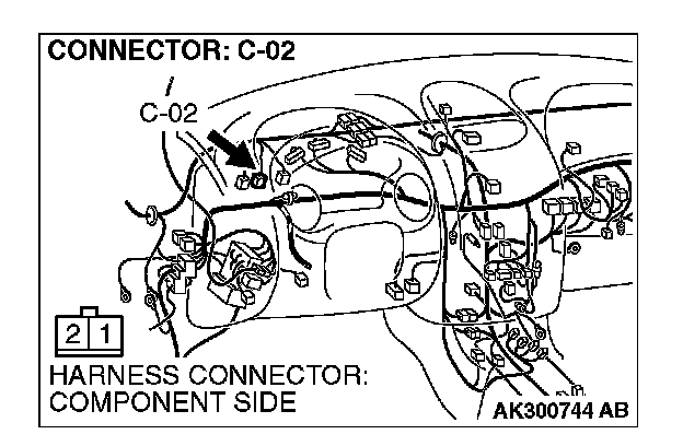 1. Disconnect the connector C-02 and measure at the harness side.