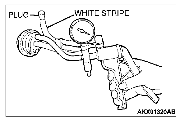 VACUUM CONTROL VALVE CHECK1. Disconnect the vacuum hose (white stripe) from the vacuum control valve and connect the hand vacuum pump to the vacuum control valve.