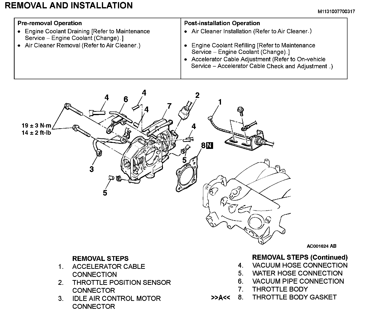 THROTTLE BODY ASSEMBLYREMOVAL AND INSTALLATION