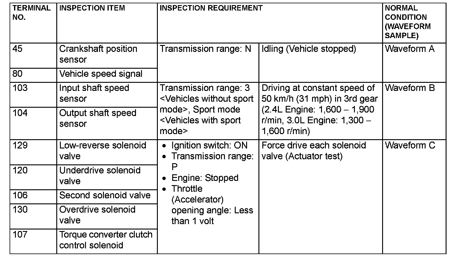INSPECTION PROCEDURE USING AN OSCILLOSCOPE