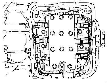 12. Remove the valve body mounting bolts (27 pieces).