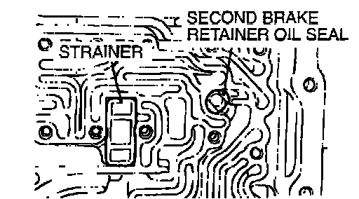 15. Remove the strainer and the second brake retainer oil seal.