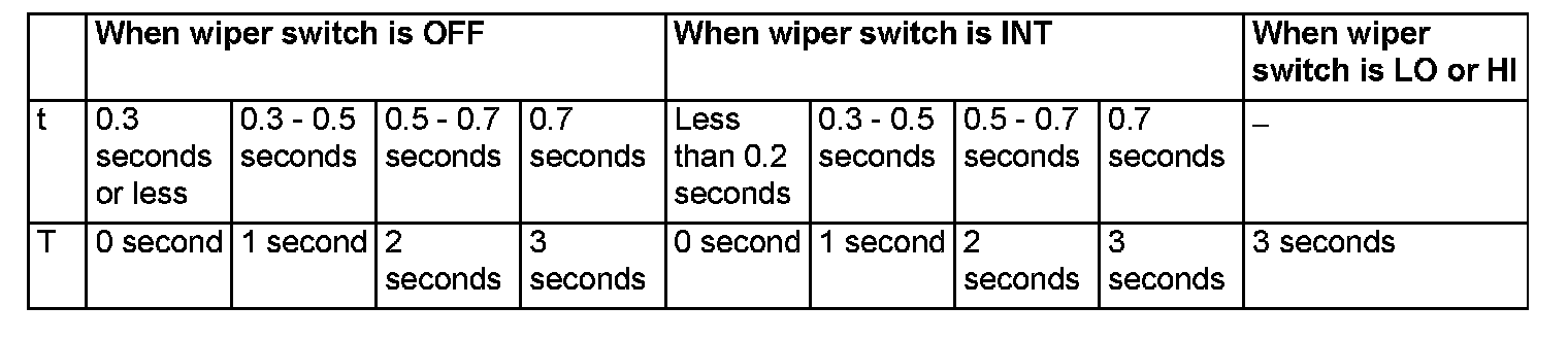 NOTE: The wiper drive signal output time varies according to the conditions. Refer to the table for details.