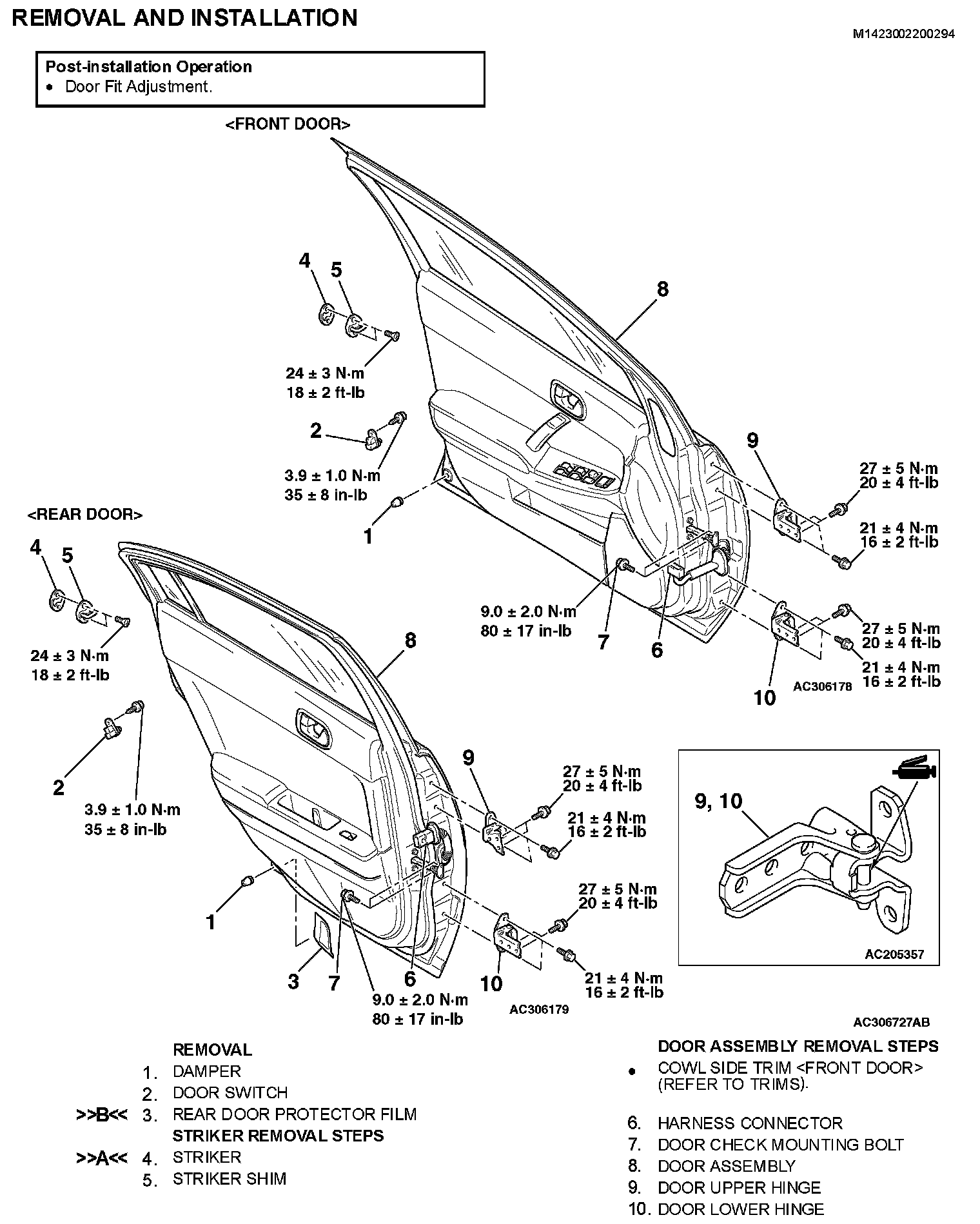 DOOR ASSEMBLYREMOVAL AND INSTALLATION