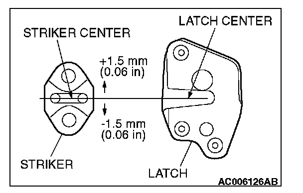 Align the center of the striker and latch within ± 1.5 mm (0.06 inch), and install.
