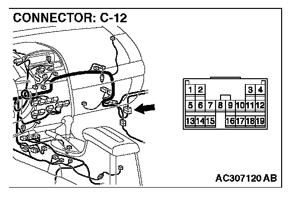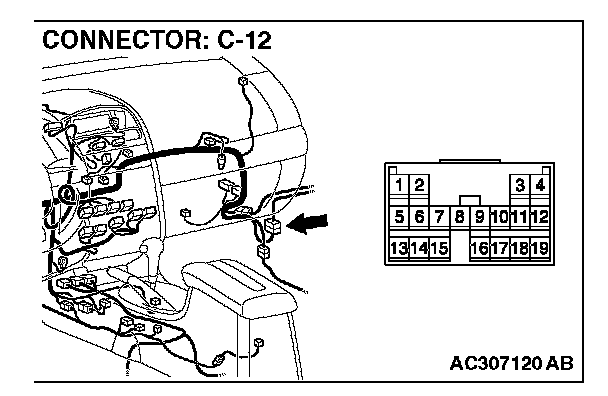 NOTE: Also check intermediate connector C-12 for loose, corroded or damaged terminals, or terminals pushed back in the connector. If intermediate connector C-12 is damaged, repair or replace the damaged component(s) as described in General (Electrical), Harness Connector Inspection.
