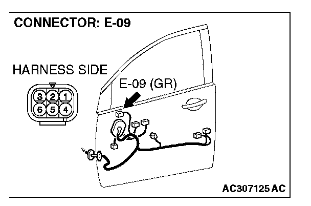 STEP 4. Check remote controlled mirror (LH) connector E-09.