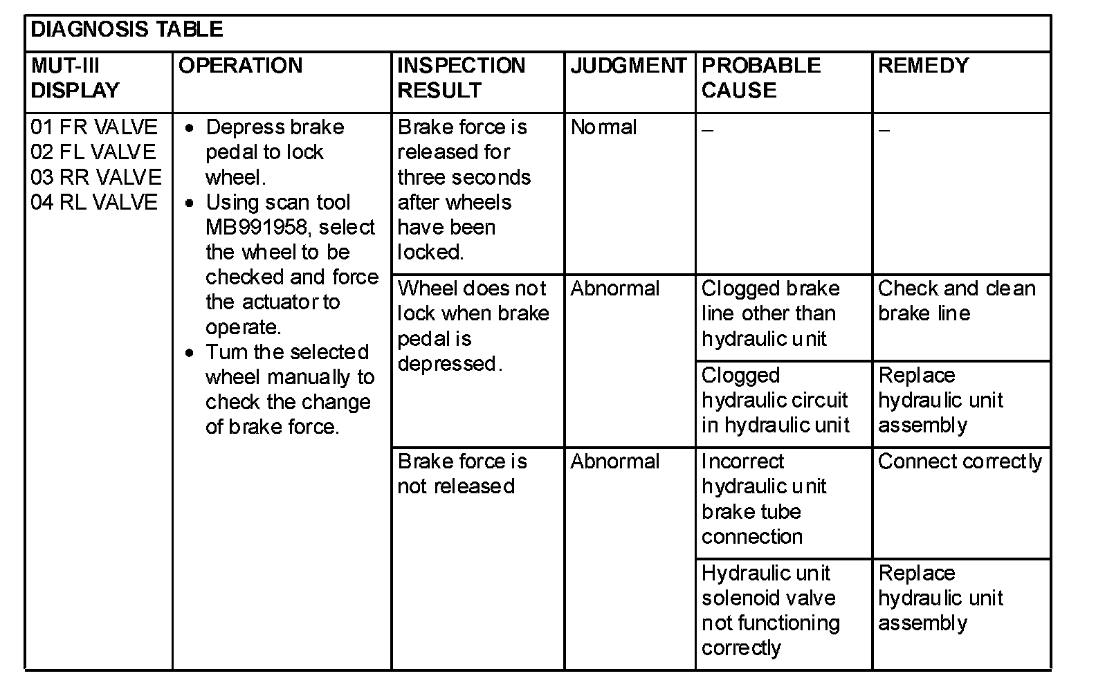 NOTE: When the ABS has been interrupted by the fail-safe function, scan tool MB991958 actuator testing cannot be used.