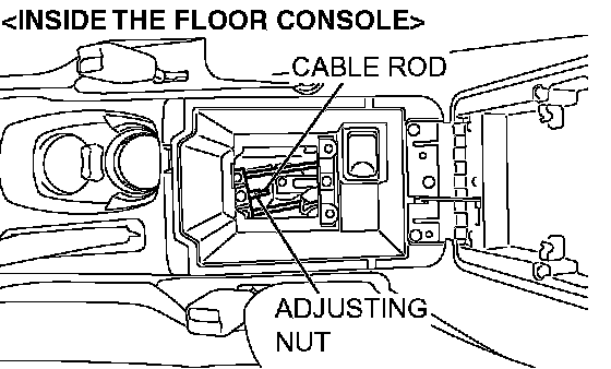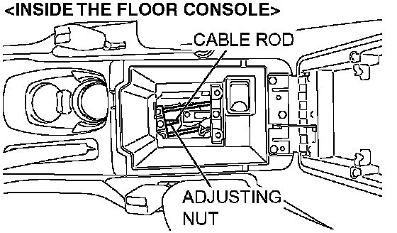 2. Remove the console inner box tray and plate, and then loosen the adjusting nut to move it to the cable rod end so that the cable will be free.