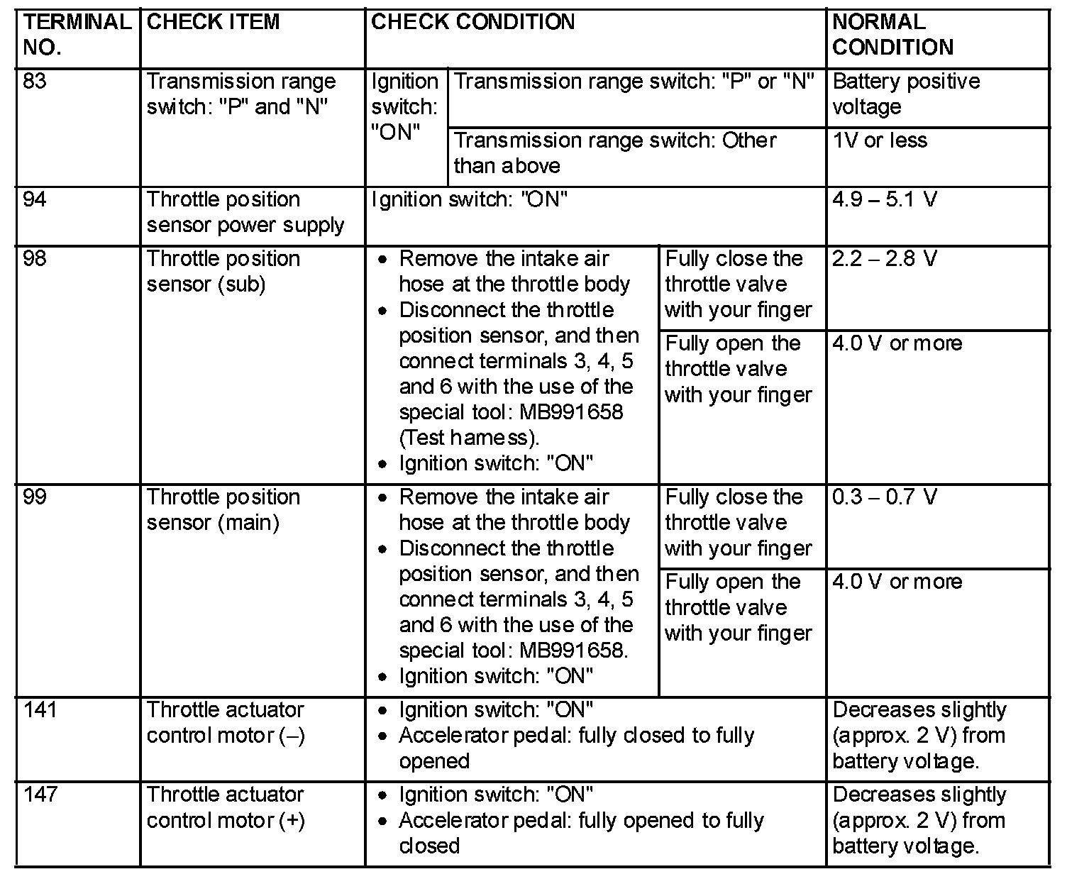 PCM Terminal Voltage Reference Chart For Auto-Cruise Control System Operation Part 1: