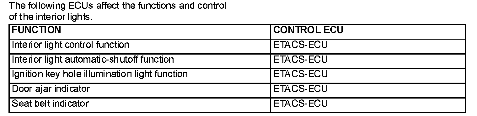 The ETACS-ECU controls the interior lights by turning them on and off in the following way: