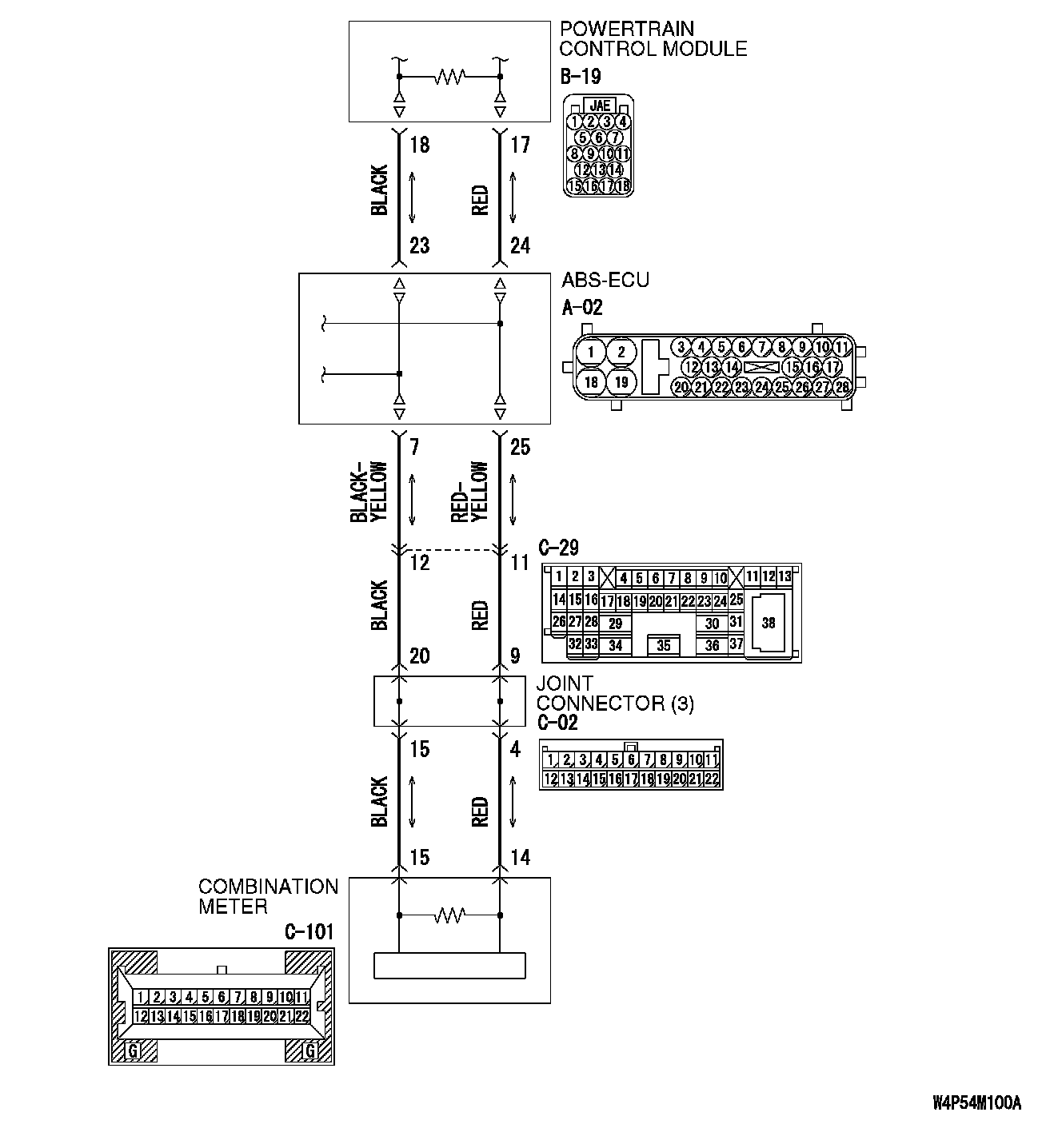Q: Are joint connector (3) C-02 and combination meter connector C-101 in good condition?