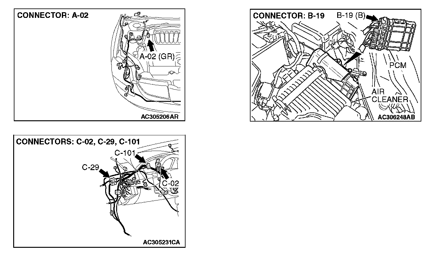 STEP 3. Check joint connector (3) C-02 and combination meter connector C-101 for loose, corroded or damaged terminals, or terminals pushed back in the connector.