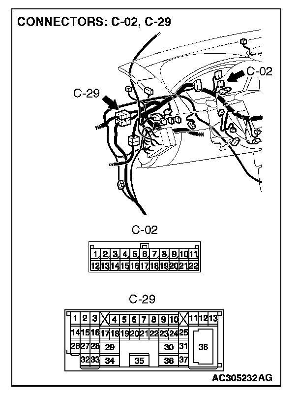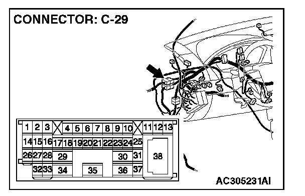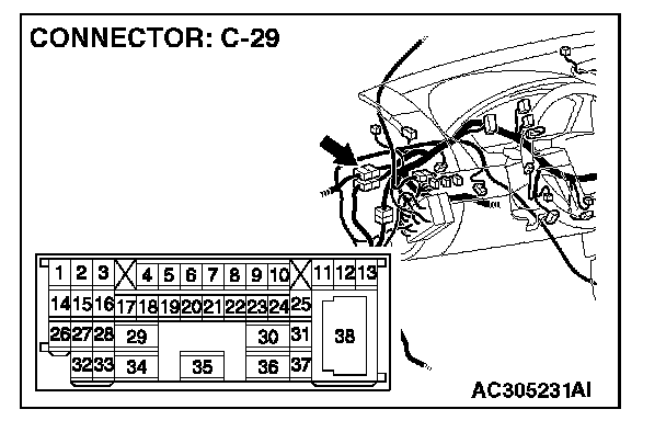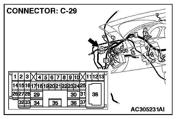 STEP 1. Check intermediate connector C-29 for loose, corroded or damaged terminals, or terminals pushed back in the connector.