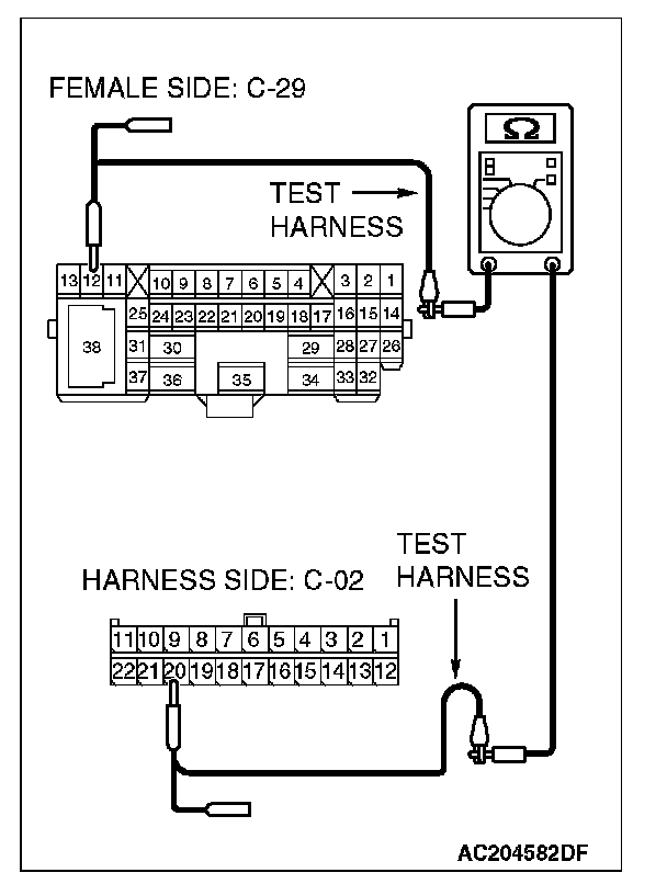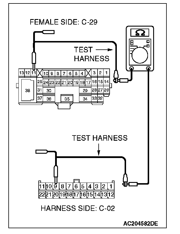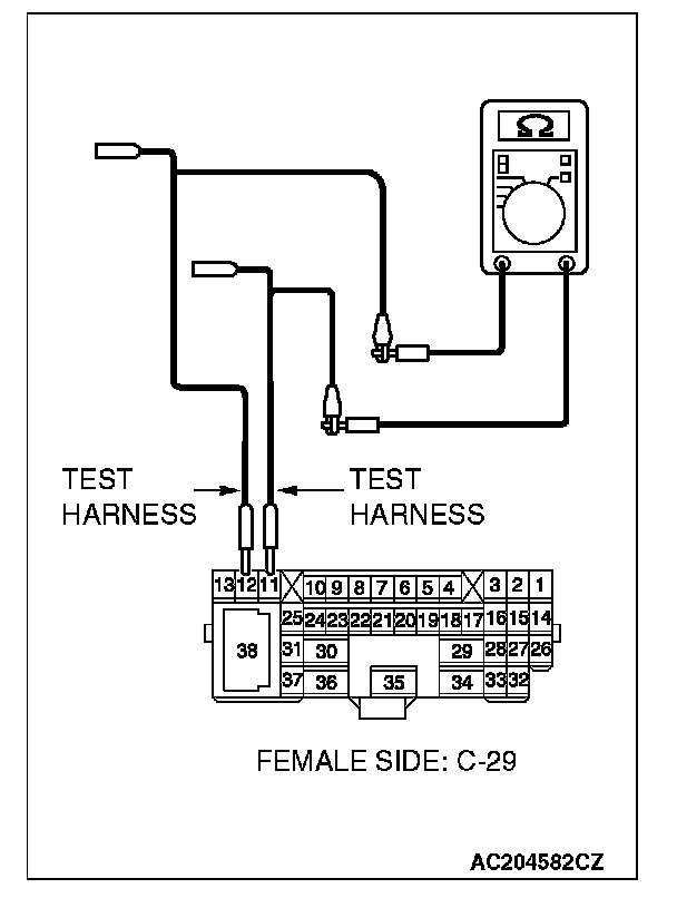 1. Disconnect intermediate connector C-29, and measure the resistance at its female side connector (instrument panel wiring harness side).