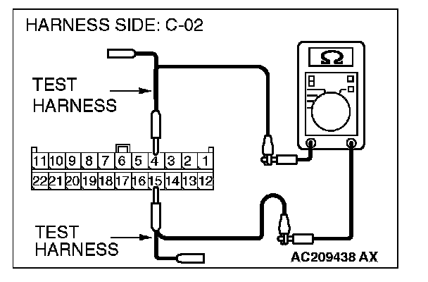 1. Disconnect joint connector (3) C-02, and measure the resistance at the wiring harness side of joint connector (3) C-02.