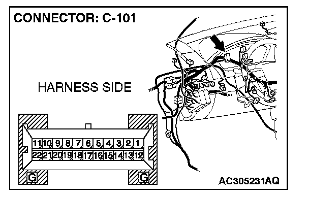 1. Disconnect combination meter C-101, and measure the resistance at the component side of combination meter connector C-101.