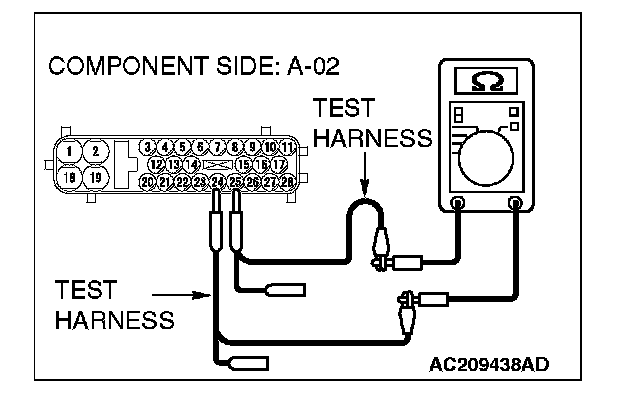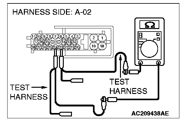 STEP 14. Check the ABS-ECU for open circuit. Measure the resistance at ABS-ECU connector A-02.