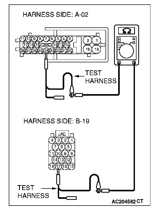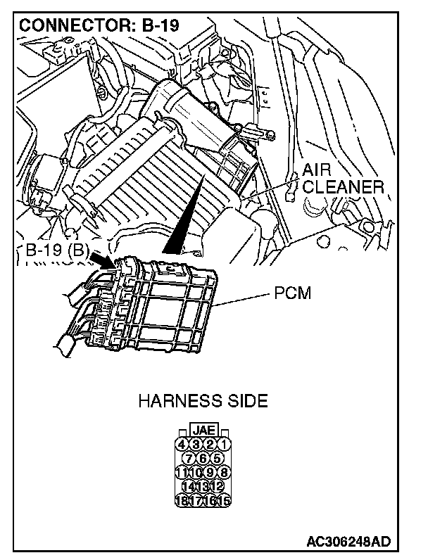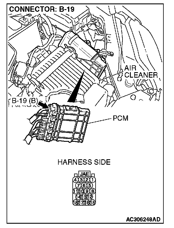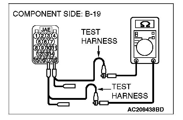 1. Disconnect powertrain control module connector B-19, and measure the resistance at the component side of powertrain control module connector B-19.