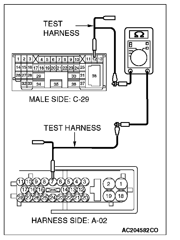 1. Disconnect intermediate connector C-29, and measure the resistance at the male side (at front wiring harness side).