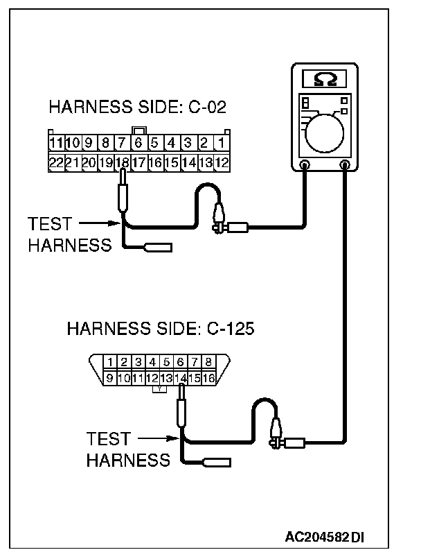 1. Disconnect joint connector (3) C-02, and measure the resistance between the wiring harness side connector of joint connector (3) C-02 and wiring harness side connector of data link connector C-125.