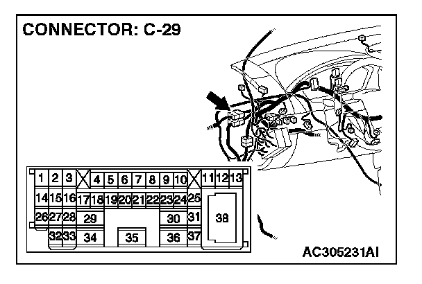 STEP 1. Check intermediate connector C-29 for loose, corroded or damaged terminals, or terminals pushed back in the connector.