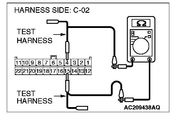 1. Disconnect joint connector (3) C-02, and measure the resistance at the wiring harness side of joint connector (3) C-02.