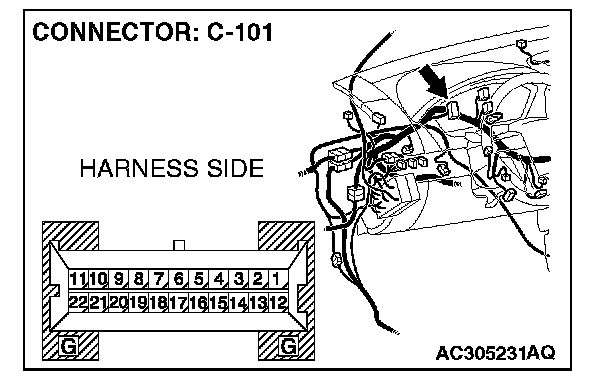 1. Disconnect combination meter C-101, and measure the resistance at the component side of combination meter connector C-101.