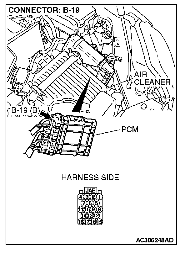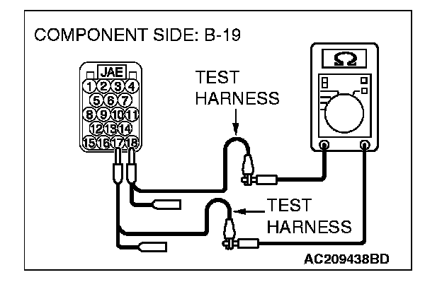 1. Disconnect powertrain control module connector B-19, and measure the resistance at the component side of powertrain control module connector B-19.