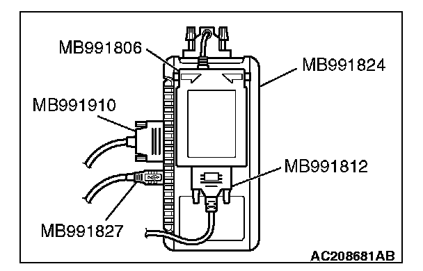 3. Connect special tool MB991827 to special tool MB991824 and the personal computer.