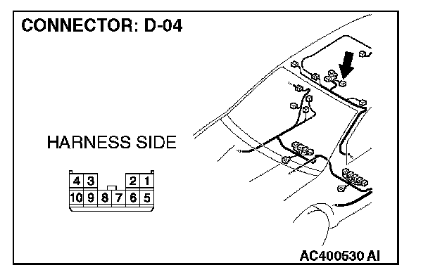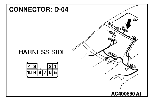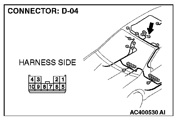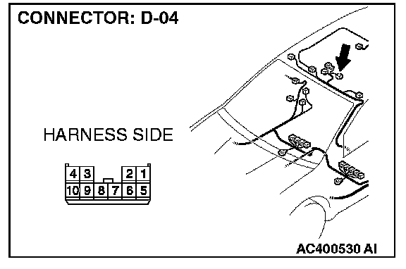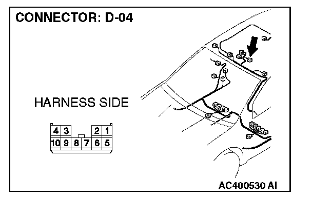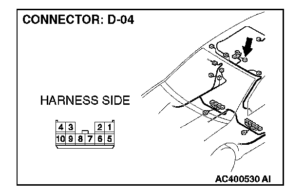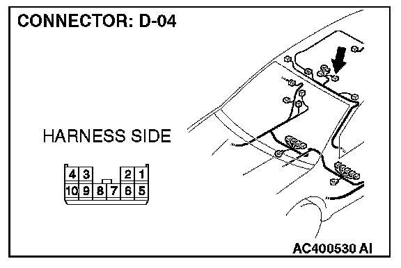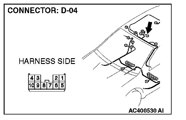 STEP 1. Check sunroof motor assembly connector D-04 for loose, corroded or damaged terminals, or terminals pushed back in the connector.