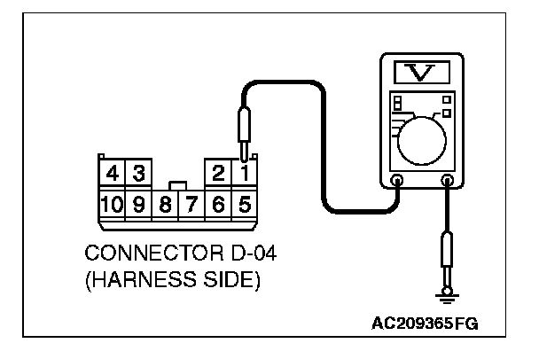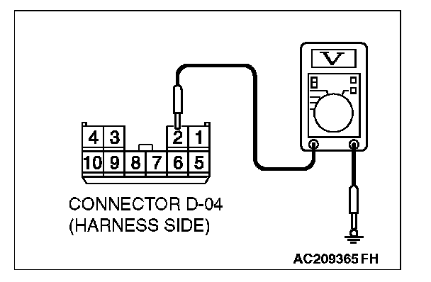 1. Disconnect sunroof motor assembly connector D-04 and measure the voltage available at the wiring harness side of the connector.