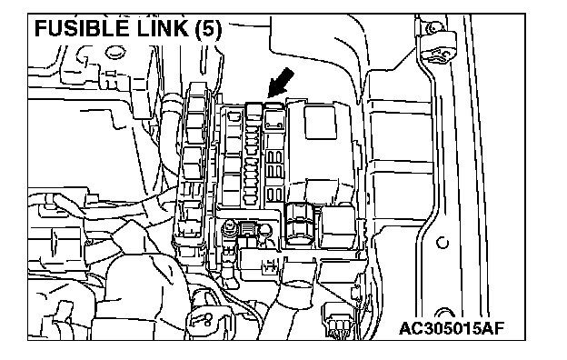 STEP 3. Check the wiring harness between sunroof motor assembly connector D-04 (terminal 1) and fusible link (5).