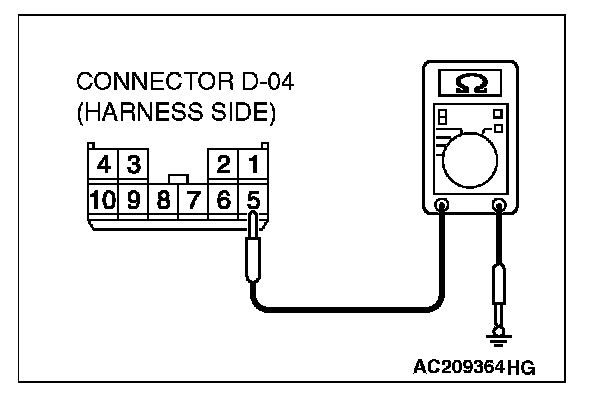 STEP 7. Check the wiring harness between sunroof motor assembly connector D-04 (terminal 5) and ground.