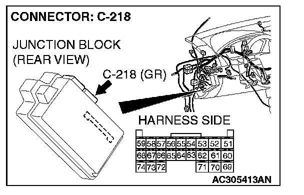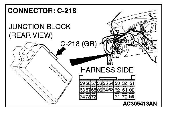 STEP 8. Check ETACS-ECU connector C-218 for loose, corroded or damaged terminals, or terminals pushed back in the connector.
