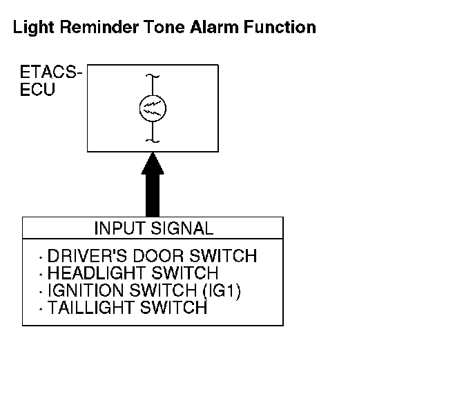 The ETACS-ECU operates the light reminder tone alarm function according to the following signals: