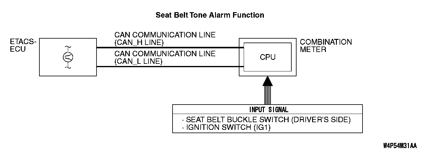The ETACS-ECU receives the driver's seat belt switch ON signal from the ignition switch (IG1) and the combination meter, and then controls the seat belt tone alarm function.
