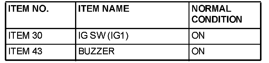 Q: Are normal conditions displayed for the "IG SW (IG1)" and "BUZZER"?