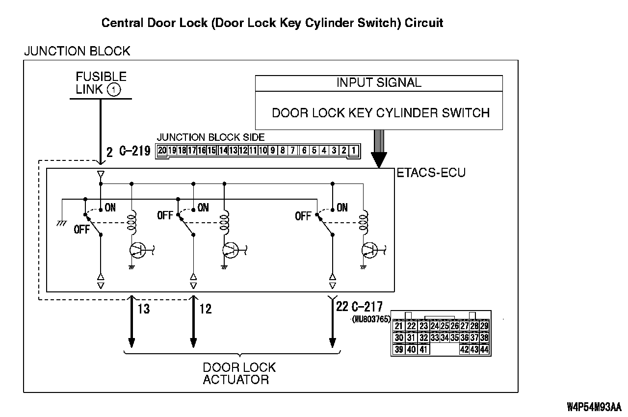 Central Door Locking System: All the Doors do not Lock or Unlock with just the Door Lock Key Cylinder Key Operation.Central Door Lock (Door Lock Key Cylinder Switch) Circuit: