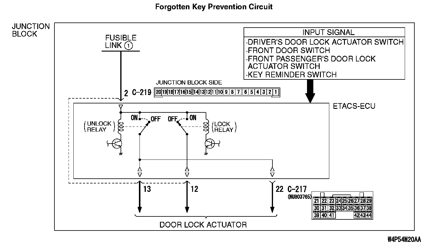 Central Door Locking System: Forgotten Key Prevention Function does not Work NormallyForgotten Key Prevention Circuit: