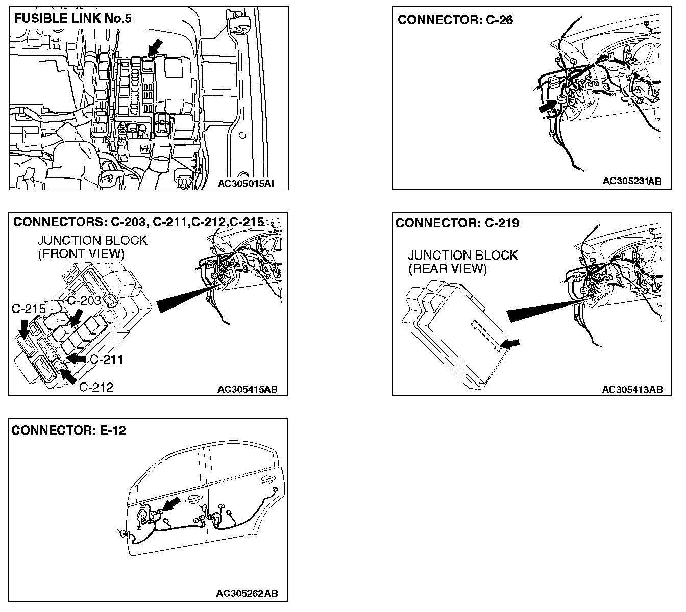 STEP 6. Check the wiring harness between power window relay connector C-203 (terminal 5) and fusible link (5).