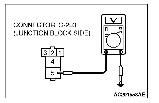 STEP 5. Check the battery power supply circuit to the power window relay. Measure the voltage at power window relay connector C-203.