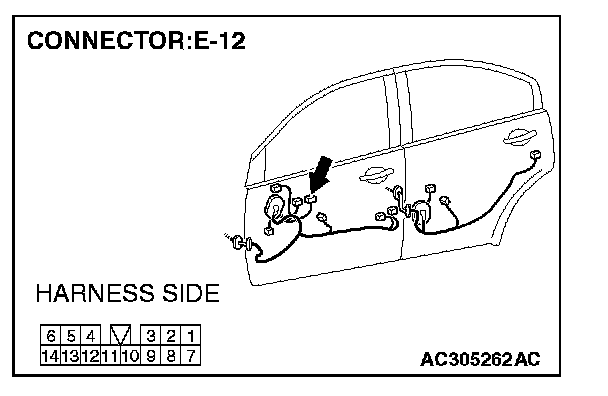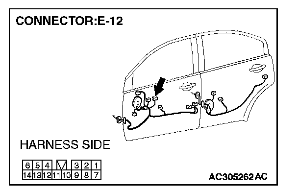 1. Disconnect power window main switch connector E-12 and measure the voltage available at the harness side of the connector.
