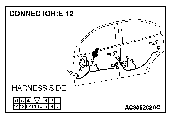 STEP 11. Check the wiring harness between power window main switch E-12 (terminal 12) and ground.