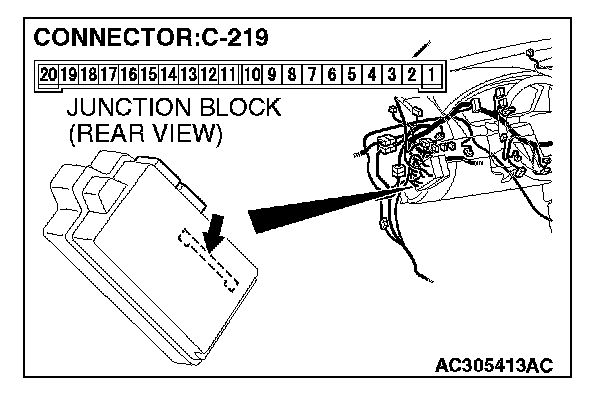 STEP 13. Check ETACS-ECU connector C-219 for loose, corroded or damaged terminals, or terminals pushed back in the connector.