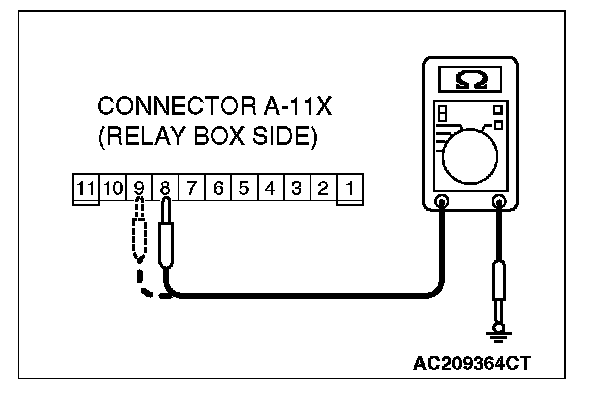 2. Measure the voltage between terminal numbers 8 and ground, and also between terminal 9 and ground.
