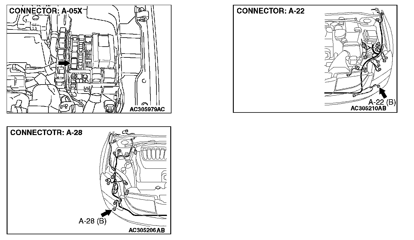 STEP 12. Check fog light relay connector A-05X for loose, corroded or damaged terminals, or terminals pushed back in the connector.