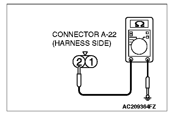 STEP 4. Check the ground circuit to the fog light (LH). Measure the resistance at fog light (LH) connector A-22.